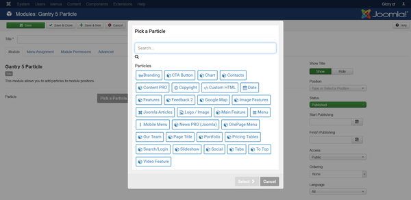 Gantry 5's new Particles system makes it easy to create, configure, and manage content blocks. Create new Particles in minutes, adjust their settings at multiple levels from global down to the individual block, and more!